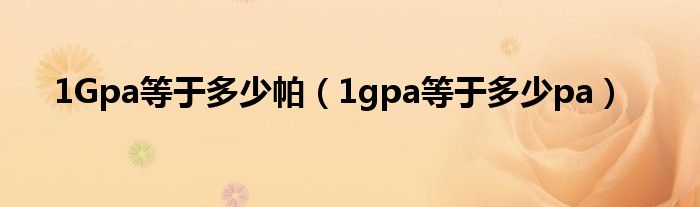 大家好,小晋来为大家解答以下问题,关于1Gpa等于多少帕,1gpa等于多少pa很多人还不知道,今天让我们一起来看看吧!