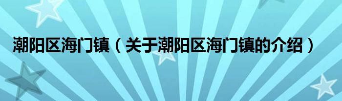 大家好,今天小乐来为大家解答以上的问题。潮阳区海门镇,关于潮阳区海门镇的介绍很多人还不知道,现在让我们一起来看看吧!