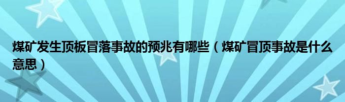 关于煤矿发生顶板冒落事故的预兆有哪些,煤矿冒顶事故是什么意思这个很多人还不知道,今天菲菲来为大家解答以上的问题,现在让我们一起来看看吧!
