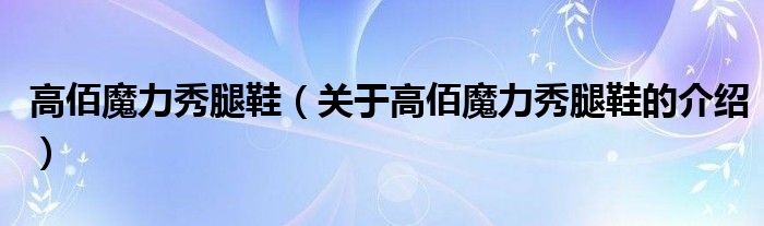 大家好,今天小乐来为大家解答以上的问题。高佰魔力秀腿鞋,关于高佰魔力秀腿鞋的介绍很多人还不知道,现在让我们一起来看看吧!