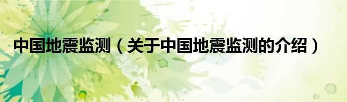 大家好,今天小乐来为大家解答以上的问题。中国地震监测,关于中国地震监测的介绍很多人还不知道,现在让我们一起来看看吧!