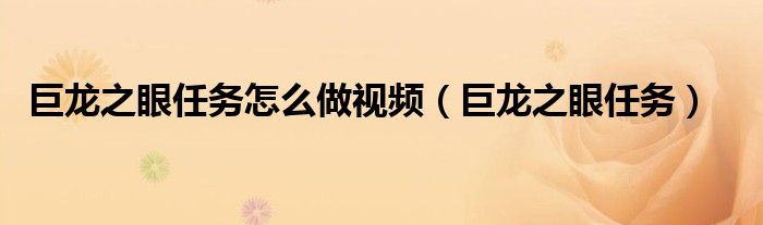 关于巨龙之眼任务怎么做视频,巨龙之眼任务这个很多人还不知道,今天菲菲来为大家解答以上的问题,现在让我们一起来看看吧!
