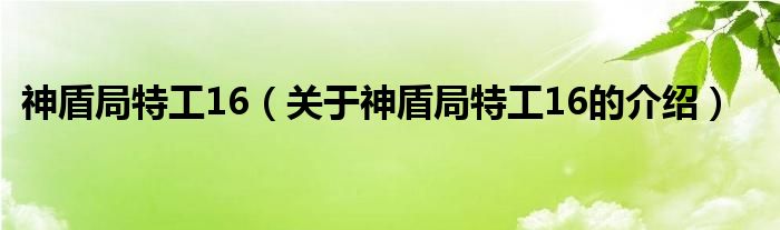 大家好,今天小乐来为大家解答以上的问题。神盾局特工16,关于神盾局特工16的介绍很多人还不知道,现在让我们一起来看看吧!