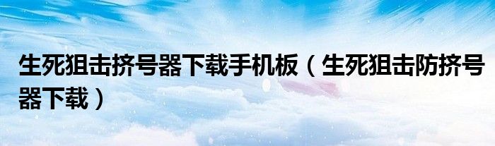 生死狙击挤号器下载手机板(生死狙击防挤号器下载)