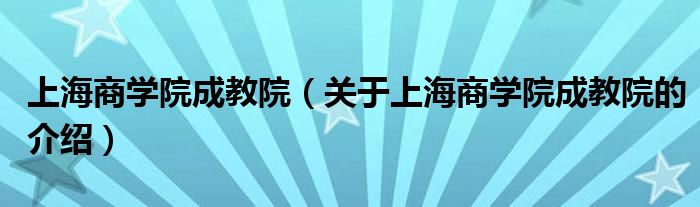 上海商学院成教院(关于上海商学院成教院的介绍)