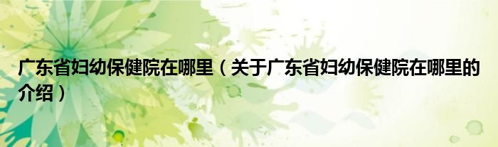 大家好,今天小乐来为大家解答以上的问题。广东省妇幼保健院在哪里,关于广东省妇幼保健院在哪里的介绍很多人还不知道,现在让我们一起来看看吧!