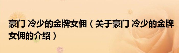 豪门 冷少的金牌女佣(关于豪门 冷少的金牌女佣的介绍)