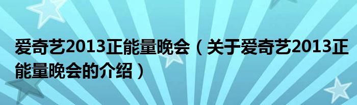 1、爱奇艺“一生一世正能量 2013美丽中国晚会”以传递正能量为核心,以追逐梦想、实现梦想的明星榜样为主体,召集2012年在影视、娱乐、综艺等领域有影响力的明星嘉宾。