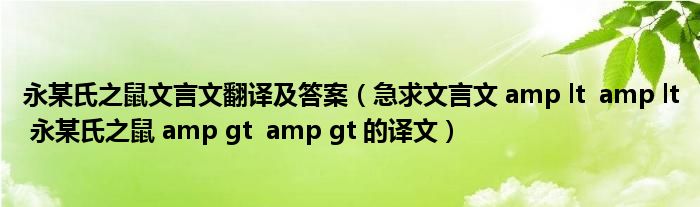 关于永某氏之鼠文言文翻译及答案,急求文言文 amp lt amp lt 永某氏之鼠 amp gt amp gt 的译文这个很多人还不知道,今天菲菲来为大家解答以上的问题,现在让我们一起来看看吧!