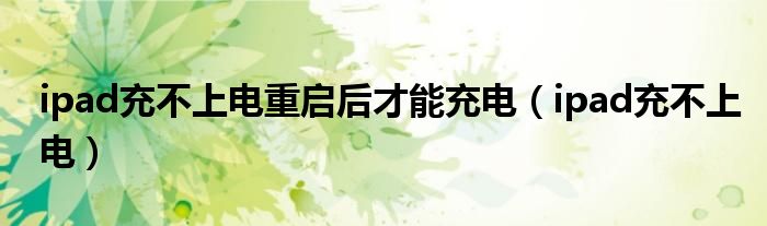 关于ipad充不上电重启后才能充电,ipad充不上电这个很多人还不知道,今天菲菲来为大家解答以上的问题,现在让我们一起来看看吧!
