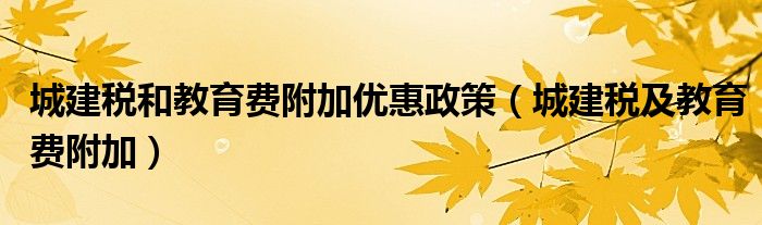 关于城建税和教育费附加优惠政策,城建税及教育费附加这个很多人还不知道,今天菲菲来为大家解答以上的问题,现在让我们一起来看看吧!