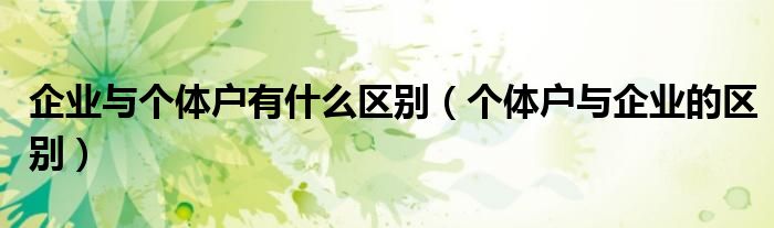 关于企业与个体户有什么区别,个体户与企业的区别这个很多人还不知道,今天菲菲来为大家解答以上的问题,现在让我们一起来看看吧!