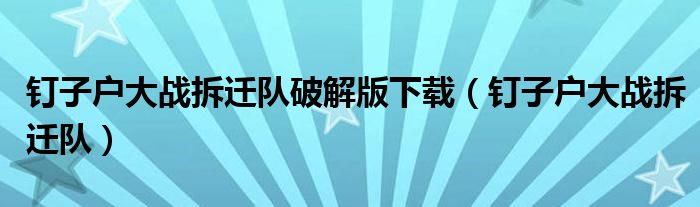 关于钉子户大战拆迁队破解版下载,钉子户大战拆迁队这个很多人还不知道,今天菲菲来为大家解答以上的问题,现在让我们一起来看看吧!