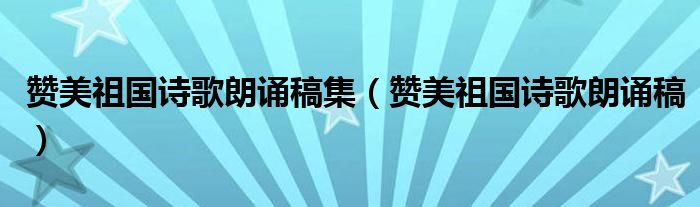 关于赞美祖国诗歌朗诵稿集,赞美祖国诗歌朗诵稿这个很多人还不知道,今天菲菲来为大家解答以上的问题,现在让我们一起来看看吧!