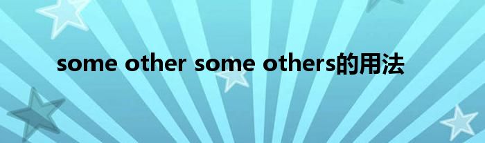 关于some other some others的用法这个很多人还不知道,今天菲菲来为大家解答以上的问题,现在让我们一起来看看吧!