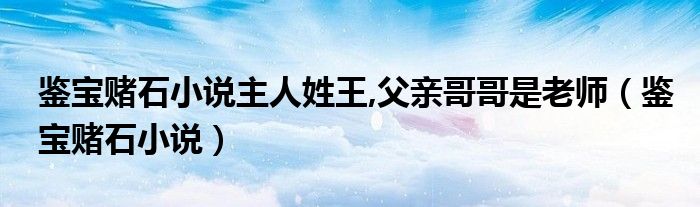 关于鉴宝赌石小说主人姓王,父亲哥哥是老师,鉴宝赌石小说这个很多人还不知道,今天菲菲来为大家解答以上的问题,现在让我们一起来看看吧!