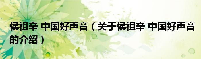 大家好,今天小乐来为大家解答以上的问题。侯祖辛 中国好声音,关于侯祖辛 中国好声音的介绍很多人还不知道,现在让我们一起来看看吧!