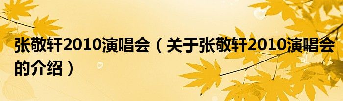 大家好,今天小乐来为大家解答以上的问题。张敬轩2010演唱会,关于张敬轩2010演唱会的介绍很多人还不知道,现在让我们一起来看看吧!
