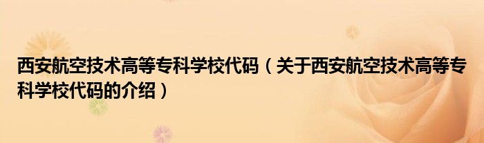 大家好,今天小乐来为大家解答以上的问题。西安航空技术高等专科学校代码,关于西安航空技术高等专科学校代码的介绍很多人还不知道,现在让我们一起来看看吧!