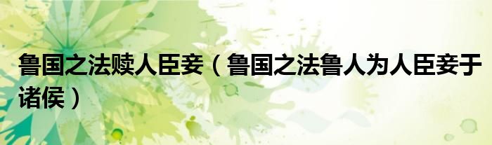 关于鲁国之法赎人臣妾,鲁国之法鲁人为人臣妾于诸侯这个很多人还不知道,今天菲菲来为大家解答以上的问题,现在让我们一起来看看吧!