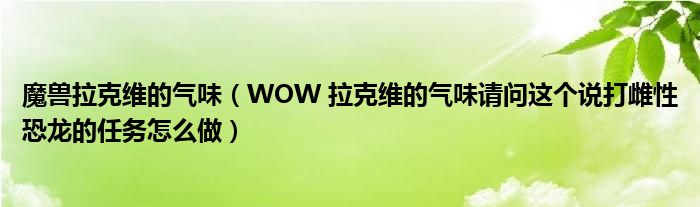 关于魔兽拉克维的气味,WOW 拉克维的气味请问这个说打雌性恐龙的任务怎么做这个很多人还不知道,今天菲菲来为大家解答以上的问题,现在让我们一起来看看吧!