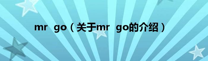 大家好,今天小乐来为大家解答以上的问题。mr go,关于mr go的介绍很多人还不知道,现在让我们一起来看看吧!
