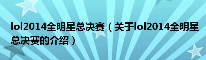 大家好,今天小乐来为大家解答以上的问题。lol2014全明星总决赛,关于lol2014全明星总决赛的介绍很多人还不知道,现在让我们一起来看看吧!