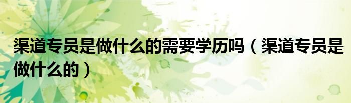 关于渠道专员是做什么的需要学历吗,渠道专员是做什么的这个很多人还不知道,今天菲菲来为大家解答以上的问题,现在让我们一起来看看吧!