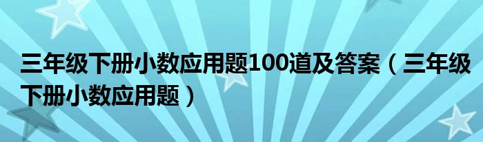 关于三年级下册小数应用题100道及答案,三年级下册小数应用题这个很多人还不知道,今天菲菲来为大家解答以上的问题,现在让我们一起来看看吧!