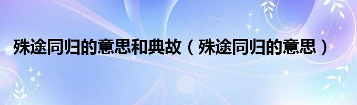 关于殊途同归的意思和典故,殊途同归的意思这个很多人还不知道,今天菲菲来为大家解答以上的问题,现在让我们一起来看看吧!