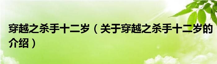 大家好,今天小乐来为大家解答以上的问题。穿越之杀手十二岁,关于穿越之杀手十二岁的介绍很多人还不知道,现在让我们一起来看看吧!