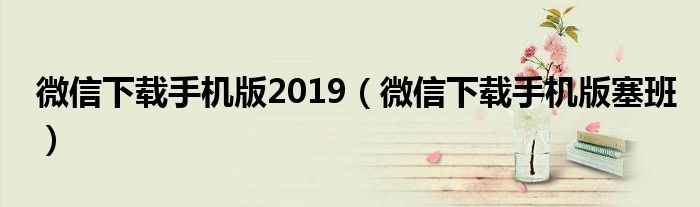 微信下载手机版2019,微信下载手机版塞班很多人还不知道,乐乐来为大家解答以上问题,现在让我们一起来看看吧!