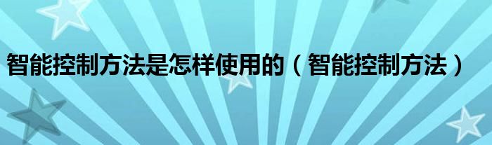 智能控制方法是怎样使用的,智能控制方法很多人还不知道,乐乐来为大家解答以上问题,现在让我们一起来看看吧!
