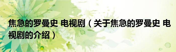 大家好,小都来为大家解答以上的问题。焦急的罗曼史 电视剧,关于焦急的罗曼史 电视剧的介绍很多人还不知道,现在让我们一起来看看吧!