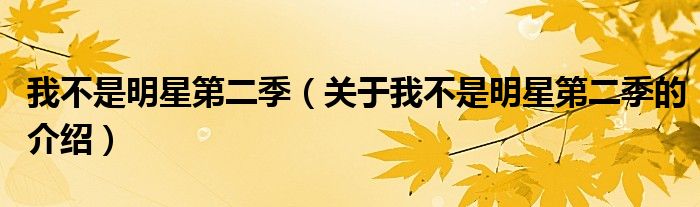 大家好,小都来为大家解答以上的问题。我不是明星第二季,关于我不是明星第二季的介绍很多人还不知道,现在让我们一起来看看吧!