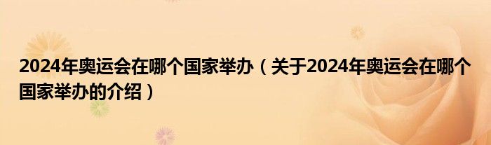 大家好,小都来为大家解答以上的问题。2024年奥运会在哪个国家举办,关于2024年奥运会在哪个国家举办的介绍很多人还不知道,现在让我们一起来看看吧!