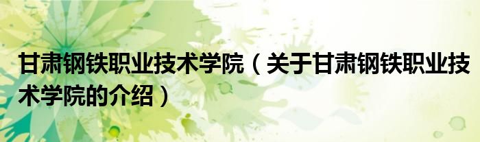 大家好,小都来为大家解答以上的问题。甘肃钢铁职业技术学院,关于甘肃钢铁职业技术学院的介绍很多人还不知道,现在让我们一起来看看吧!