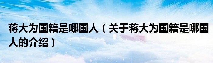 大家好,小都来为大家解答以上的问题。蒋大为国籍是哪国人,关于蒋大为国籍是哪国人的介绍很多人还不知道,现在让我们一起来看看吧!