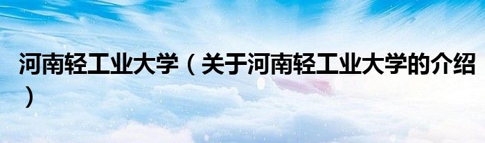 大家好,小都来为大家解答以上的问题。河南轻工业大学,关于河南轻工业大学的介绍很多人还不知道,现在让我们一起来看看吧!