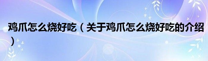 大家好,小都来为大家解答以上的问题。鸡爪怎么烧好吃,关于鸡爪怎么烧好吃的介绍很多人还不知道,现在让我们一起来看看吧!