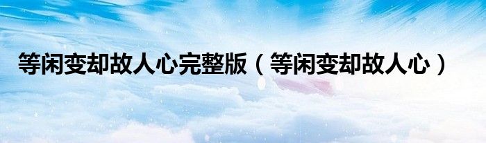大家好,雨雨来为大家解答以上问题,等闲变却故人心完整版,等闲变却故人心很多人还不知道,现在让我们一起来看看吧!