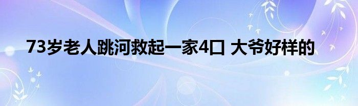 大家好.我是互联百科的羽儿,现在为大家解决以上73岁老人跳河救起一家4口 大爷好样的的问题.
