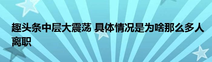大家好.我是互联百科的羽儿,现在为大家解决以上趣头条中层大震荡 具体情况是为啥那么多人离职的问题.