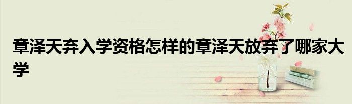 大家好.我是互联百科的羽儿,现在为大家解决以上章泽天弃入学资格怎样的章泽天放弃了哪家大学的问题.