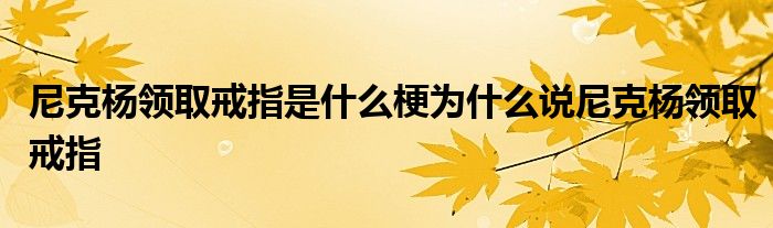 大家好.我是互联百科的羽儿,现在为大家解决以上尼克杨领取戒指是什么梗为什么说尼克杨领取戒指的问题.