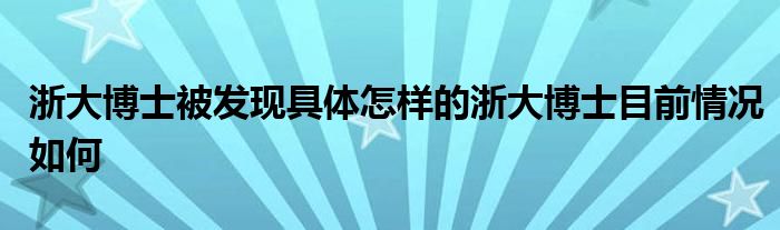 大家好.我是互联百科的羽儿,现在为大家解决以上浙大博士被发现具体怎样的浙大博士目前情况如何的问题.