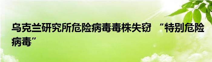 大家好.我是互联百科的羽儿,现在为大家解决以上乌克兰研究所危险病毒毒株失窃 “特别危险病毒”的问题.