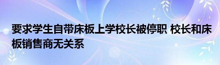 大家好.我是互联百科的羽儿,现在为大家解决以上要求学生自带床板上学校长被停职 校长和床板销售商无关系的问题.