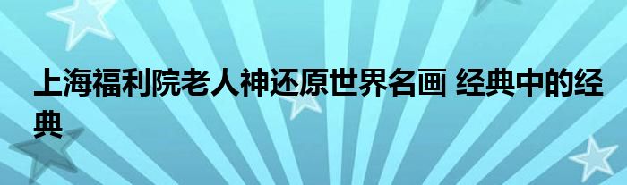 大家好.我是互联百科的羽儿,现在为大家解决以上上海福利院老人神还原世界名画 经典中的经典的问题.
