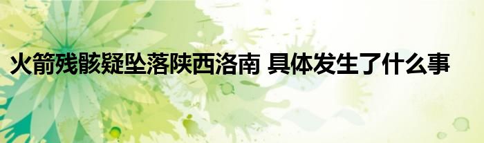大家好.我是互联百科的羽儿,现在为大家解决以上火箭残骸疑坠落陕西洛南 具体发生了什么事的问题.